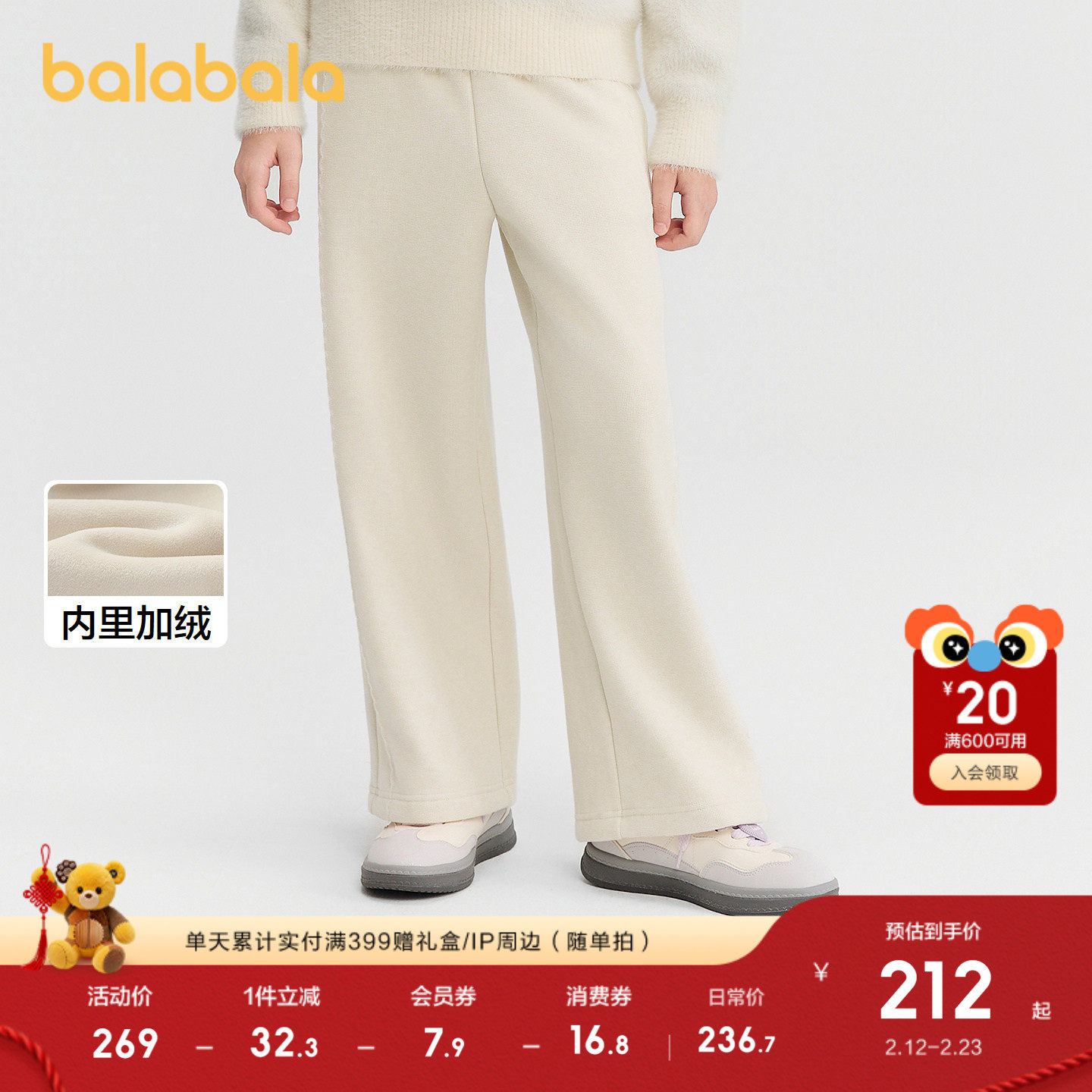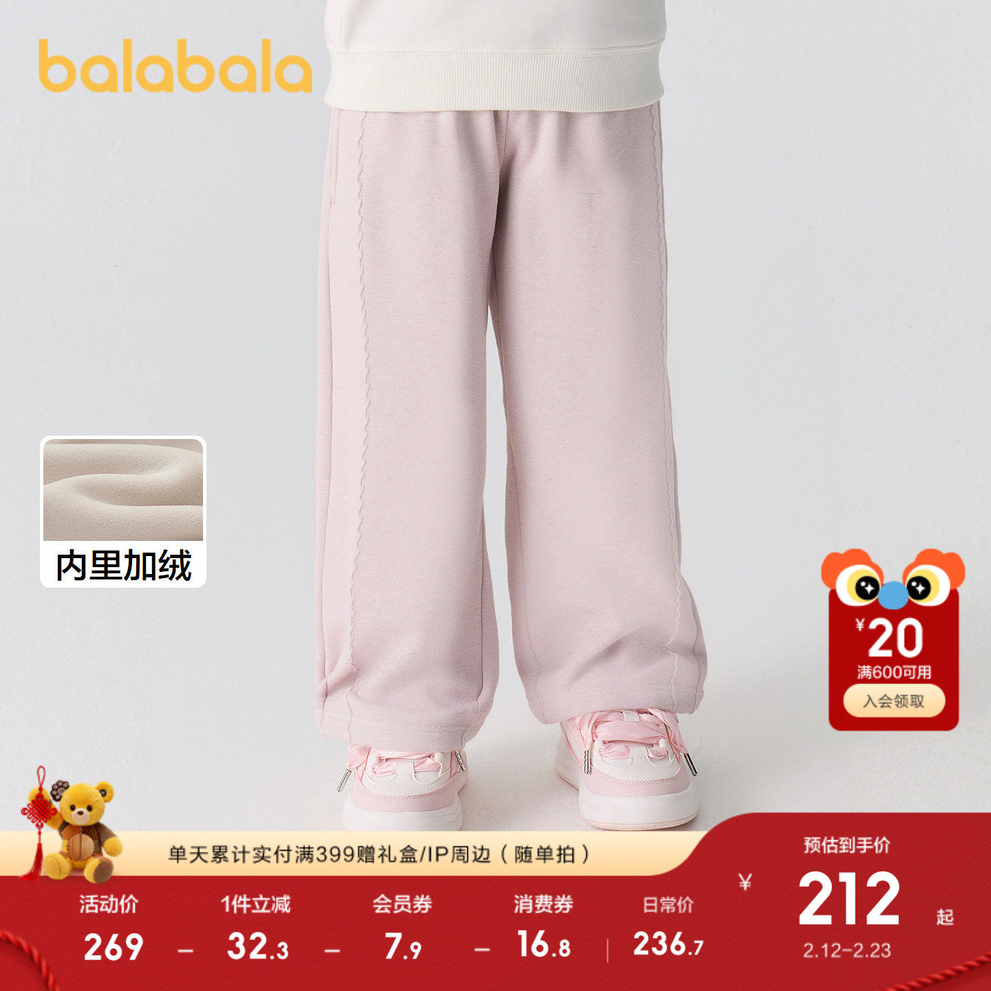 【商场同款】巴拉巴拉童装女童加绒直筒儿童裤子2025冬装新款保暖