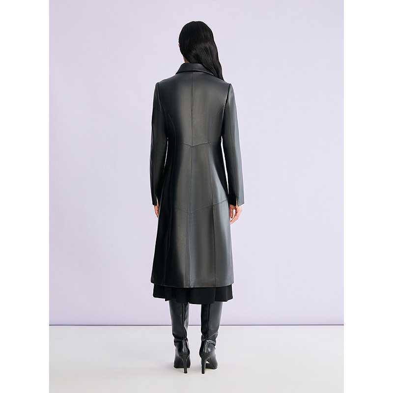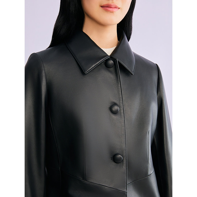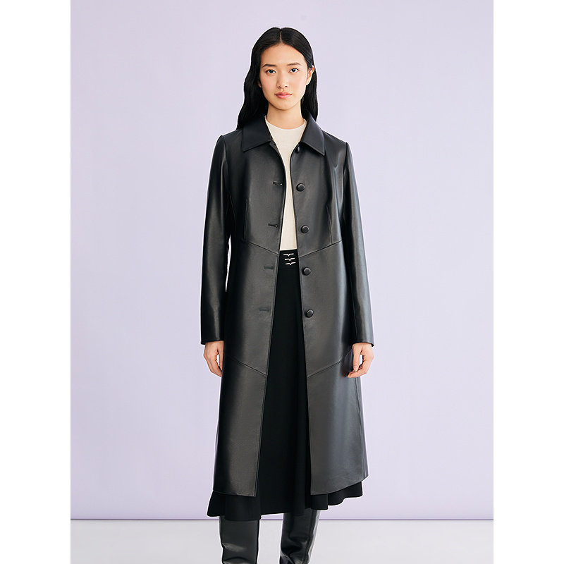 YINER音儿专选2026春季新款法式时尚翻领中长款真皮皮衣夹克外套
