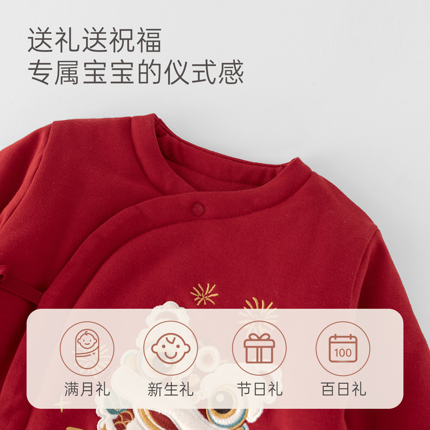 【3零呵护】新生婴儿夹棉连体衣冬季宝宝保暖红色年服满月和尚服