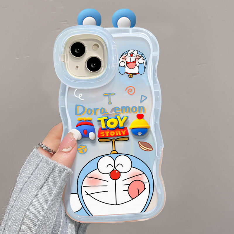 适用苹果17promax手机壳新女款iPhone16/15哆啦A梦公仔11隐形双支架12软硅胶14plus可爱防摔xr保护套xs波浪边