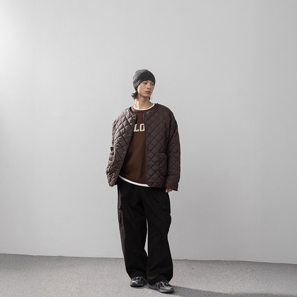 NOFUNNULL 美式亨利领纽扣套头毛衣男秋冬宽松休闲圆领针织衫上衣