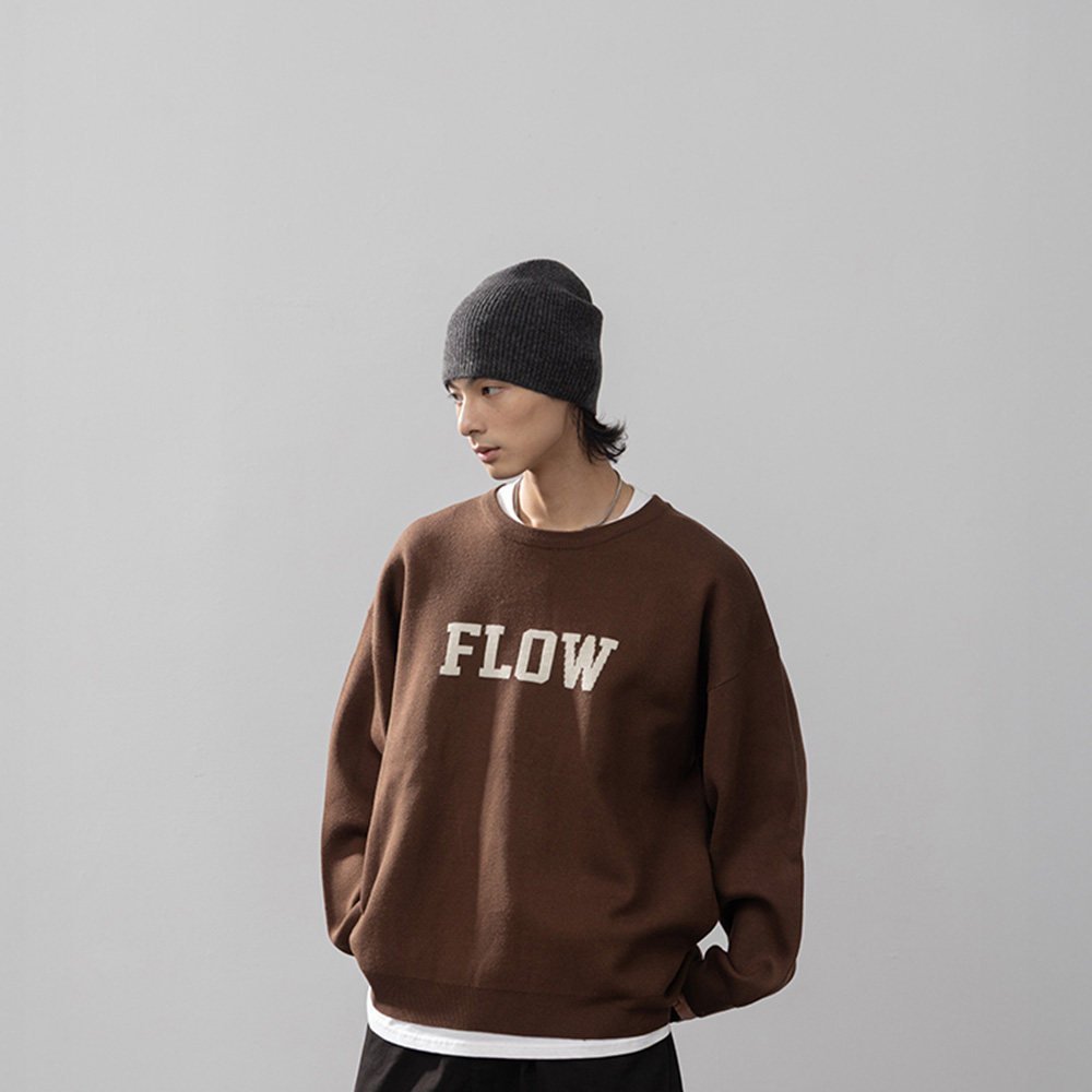 QUEENSHOP2025秋冬新品男装经典FLOW刺绣针织长袖毛衣-咖01099299