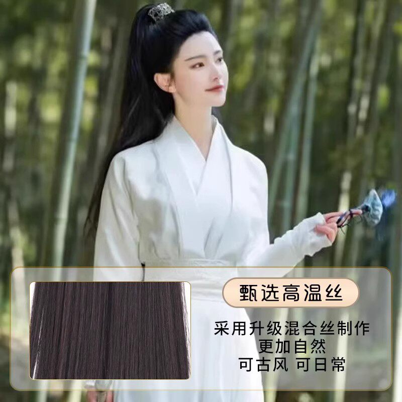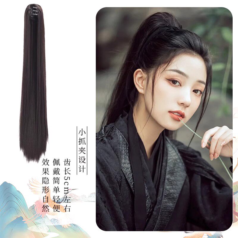汉服假发女长直发抓夹马尾夏网红仿真自然超轻高马尾古风假发辫子