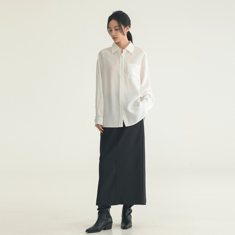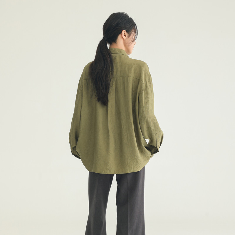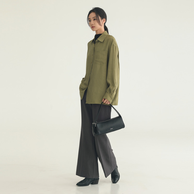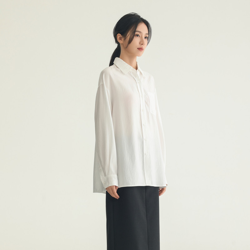 黑标BAIZHUO冬季新款简约气质垂感超宽松开襟长袖衬衫女AZ44CS574