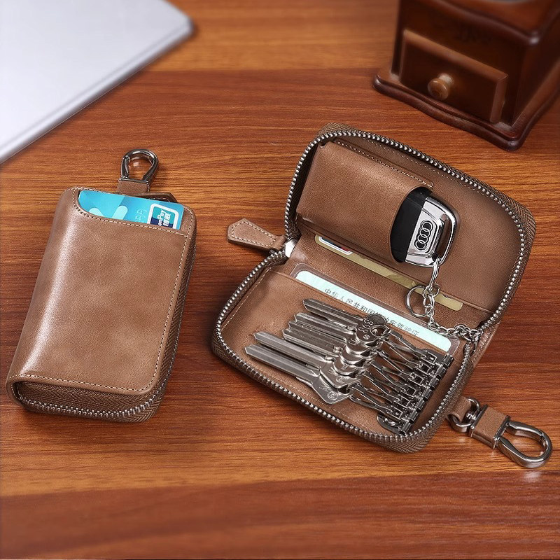 复古钥匙包男2025新款软皮多功能汽车锁匙包大容量拉链钥匙收纳包