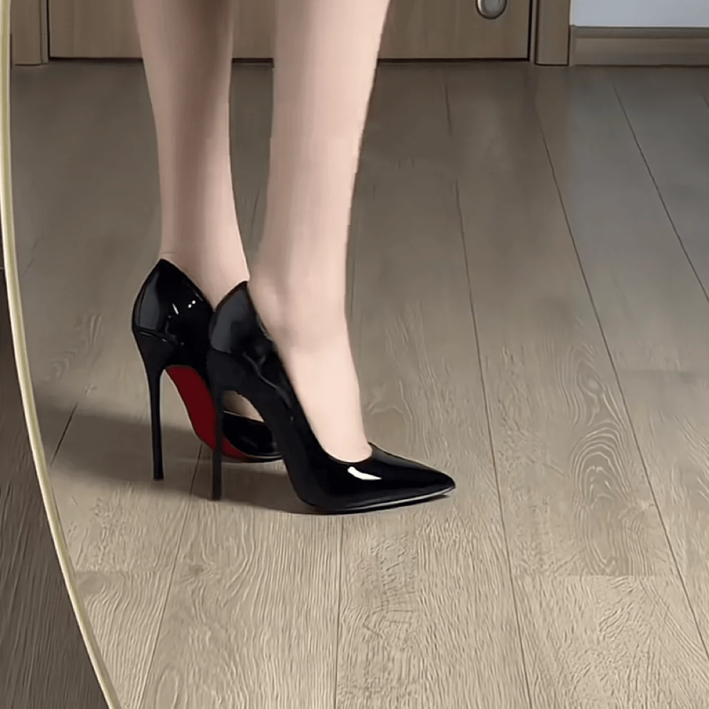 黑色侧空红底高跟鞋2025春秋新款尖头细跟御姐性感约会裸色单鞋女