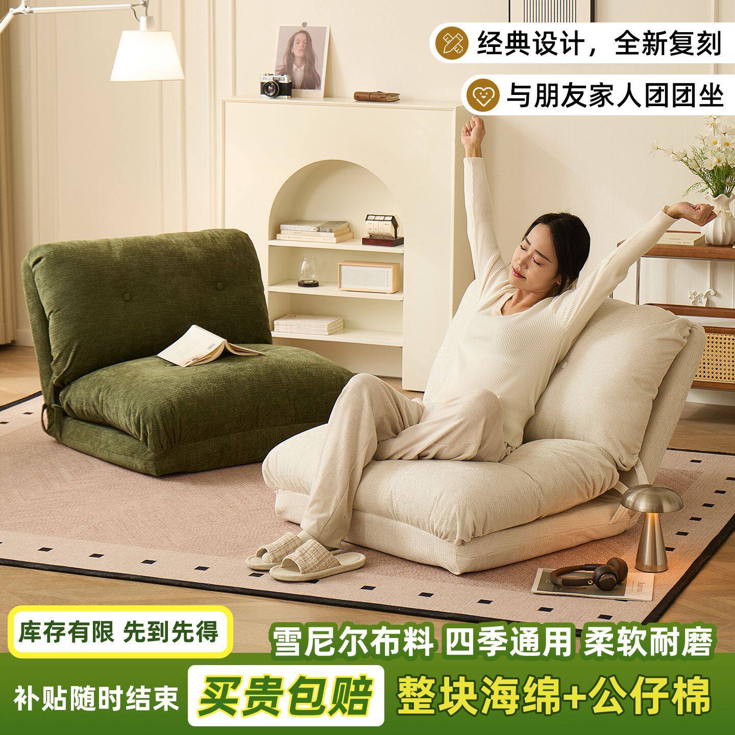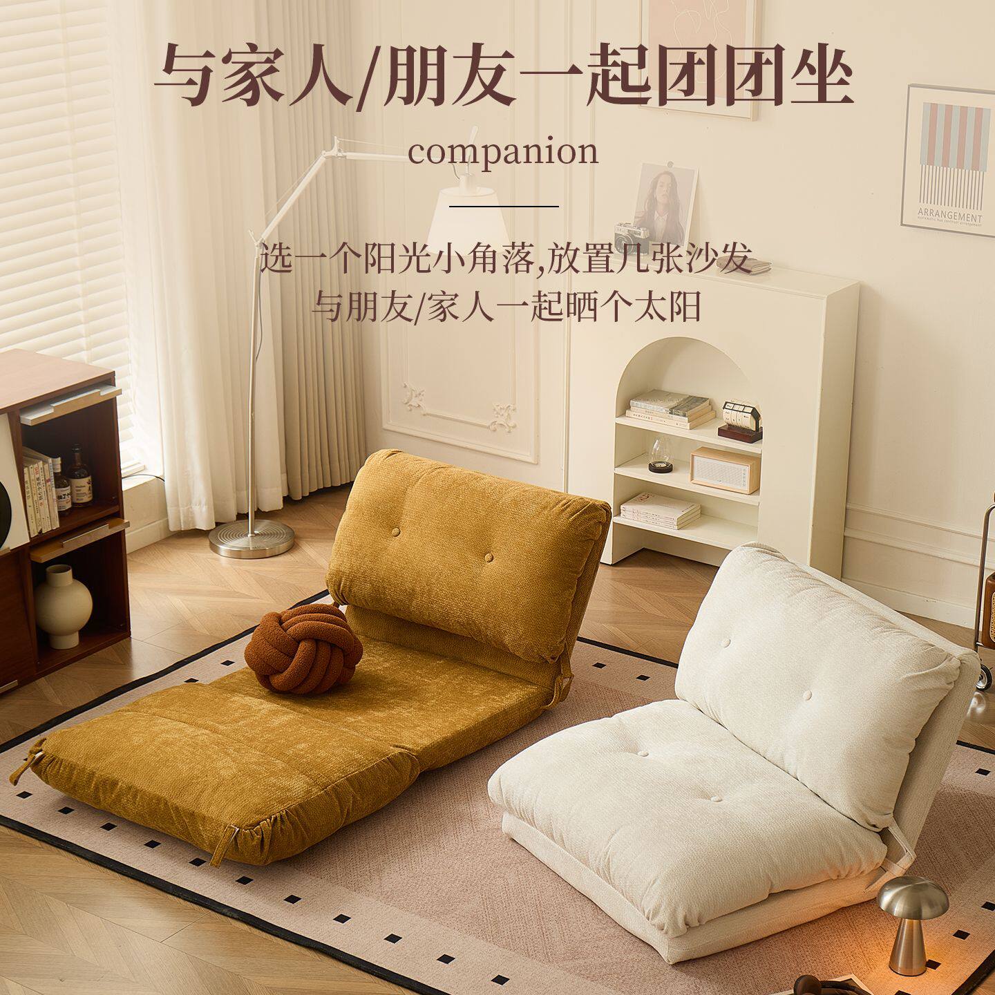 懒人沙发休闲椅阳台折叠靠背椅飘窗坐垫床上榻榻米侘寂椅子小沙发