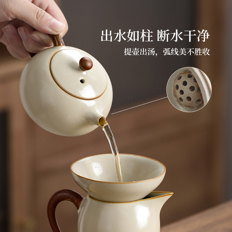 汝窑功夫茶具套装2024新款喝茶家用泡茶陶瓷盖碗茶壶茶杯子套装