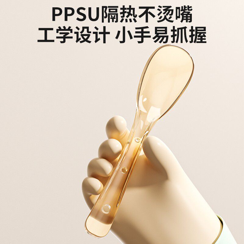 婧麒宝宝辅食勺儿童叉勺婴儿奶瓶级PPSU吃饭勺调羹元宝进食便携