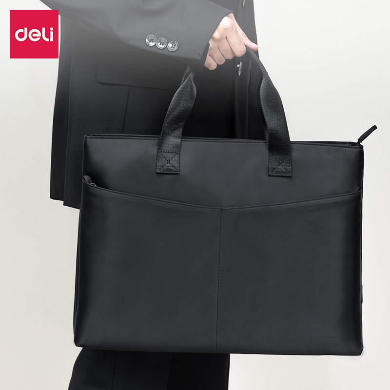 得力BG145公文包商务男士款定制两用手提单肩多功能大容量a4文件包手拿资料电脑包帆布文件袋子公文袋办公