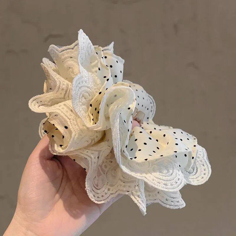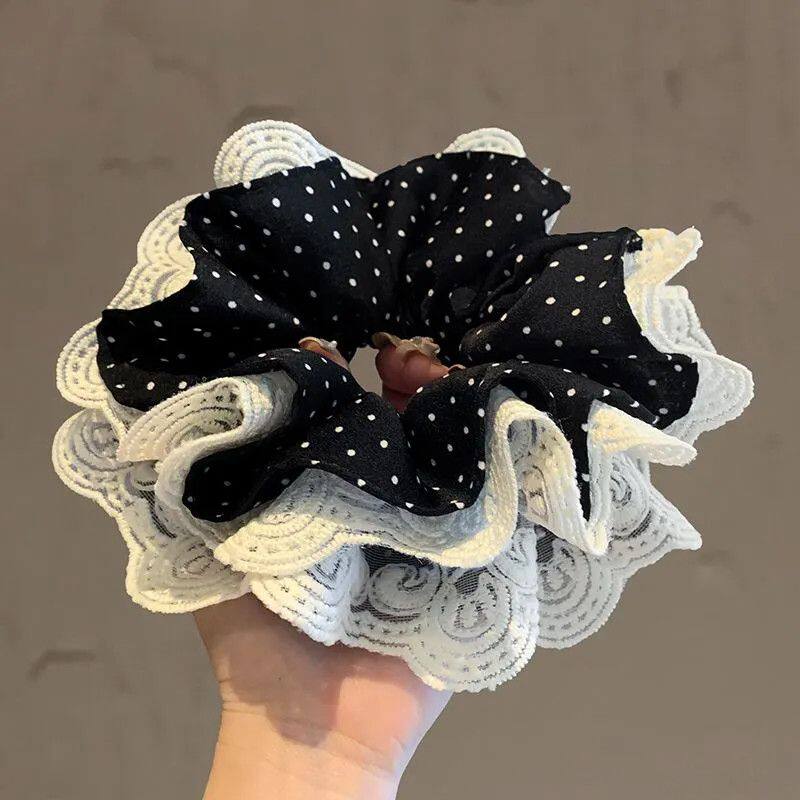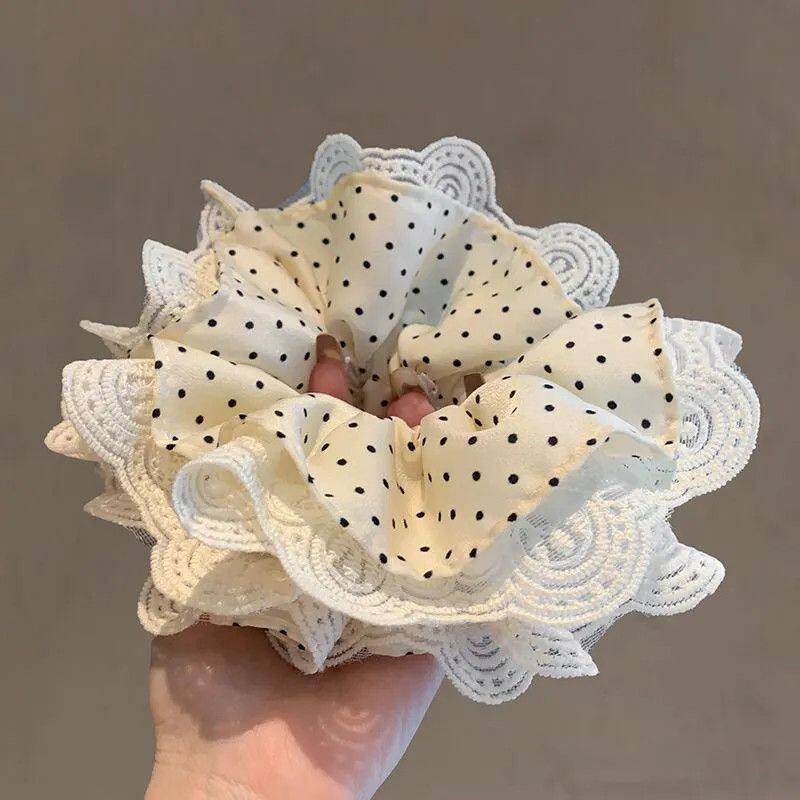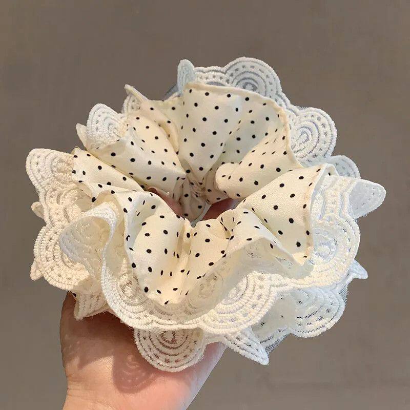 蕾丝头花大肠发圈2025超大新款花边波点头发头绳韩系发绳皮筋发饰