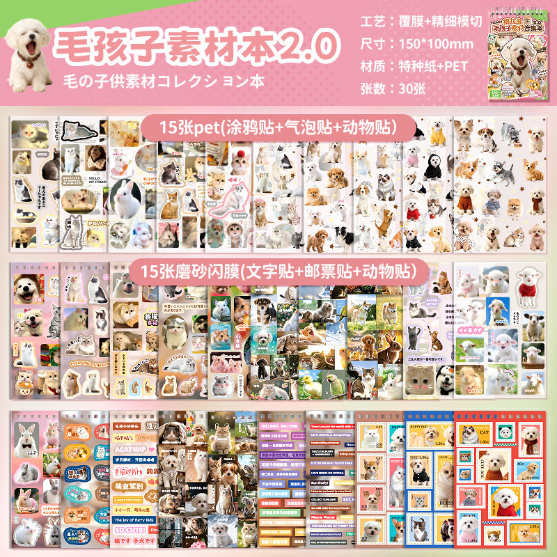 提拉多毛孩子素材合集本2卡通动物小狗手帐贴纸彩色装饰小图案pet免裁剪可爱创意女孩儿童手账咕卡贴画不重复