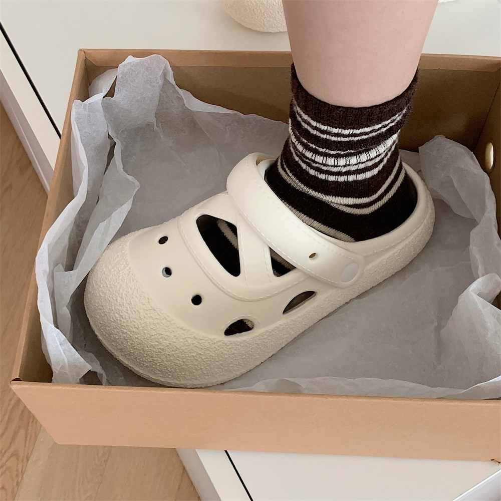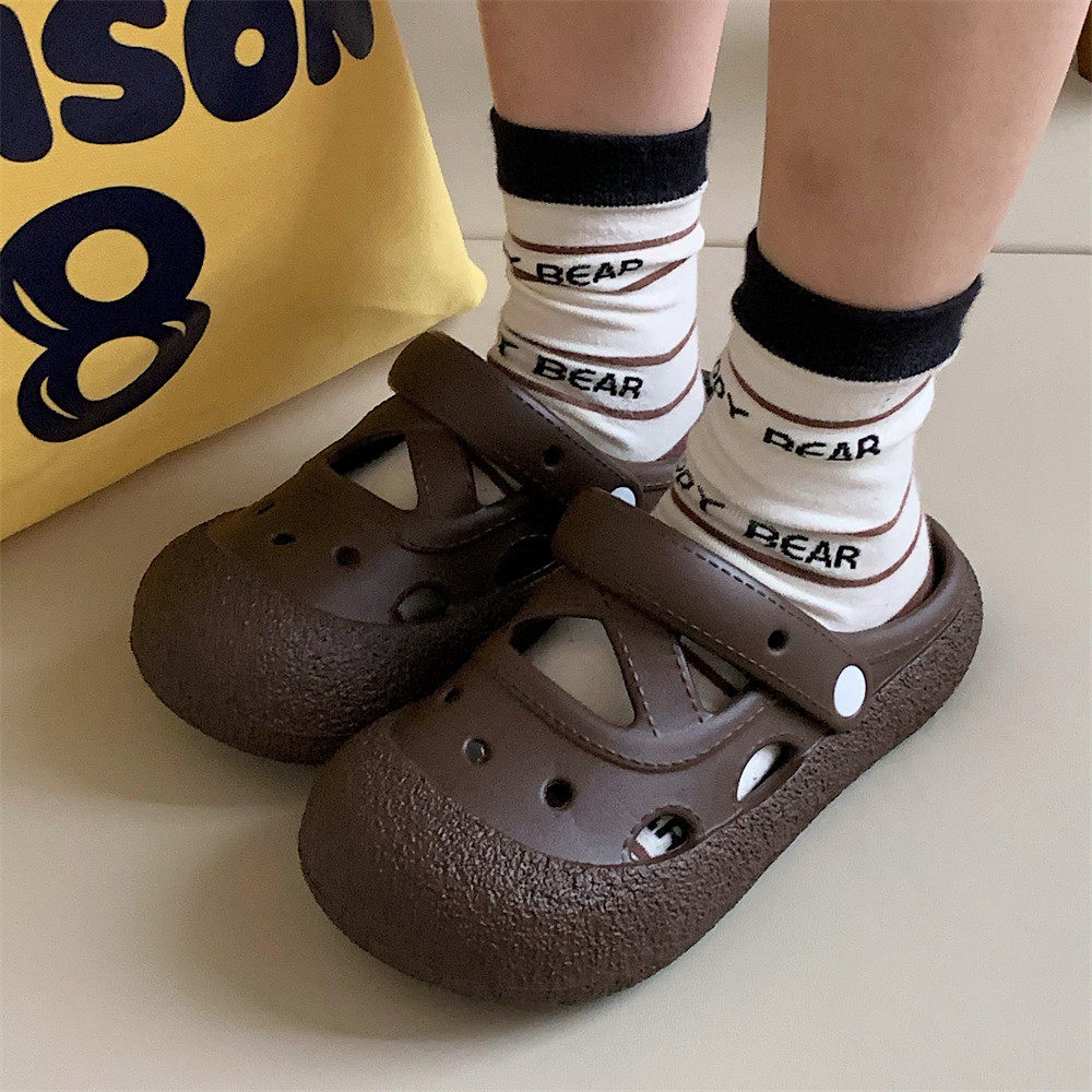 细细条 亲子简约创意交叉带洞洞鞋户外休闲百搭防滑夏季凉拖鞋女