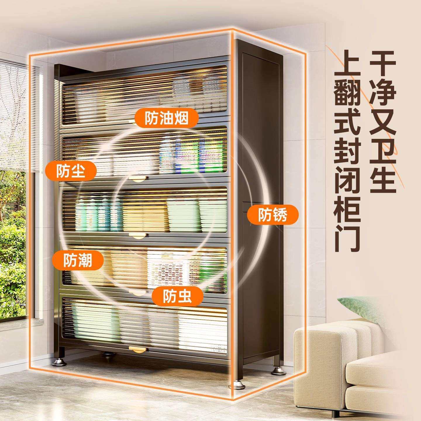 厨房置物架落地多层家用防尘柜餐边柜靠墙一体式收纳柜锅具储物柜