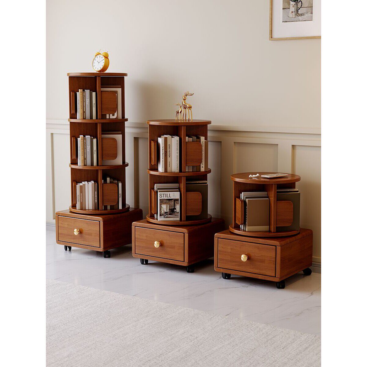 实木旋转书架360度书柜置物架落地一体靠墙可移动转角儿童小窄柜