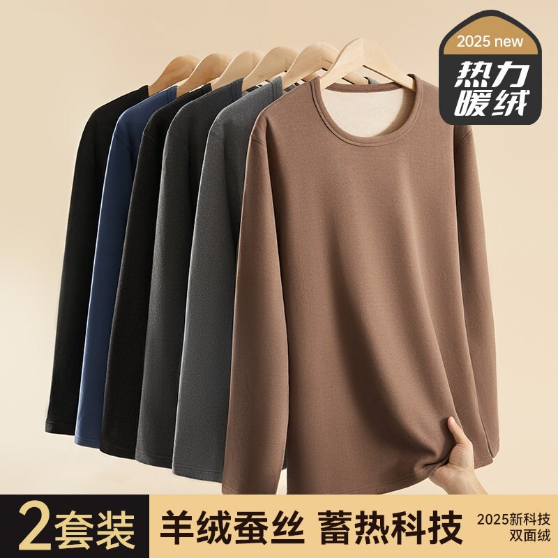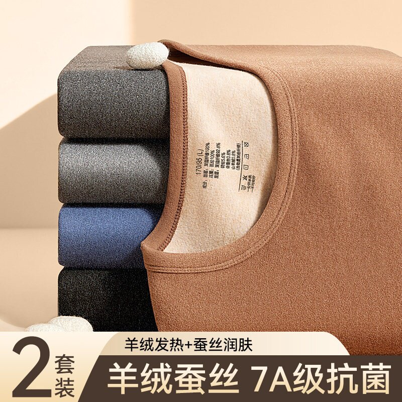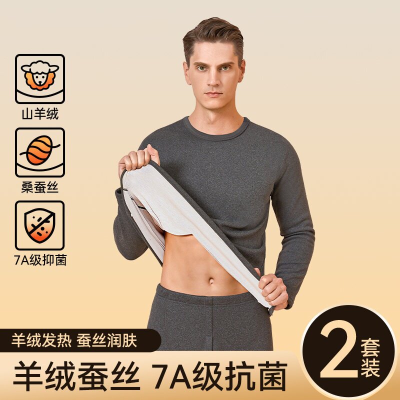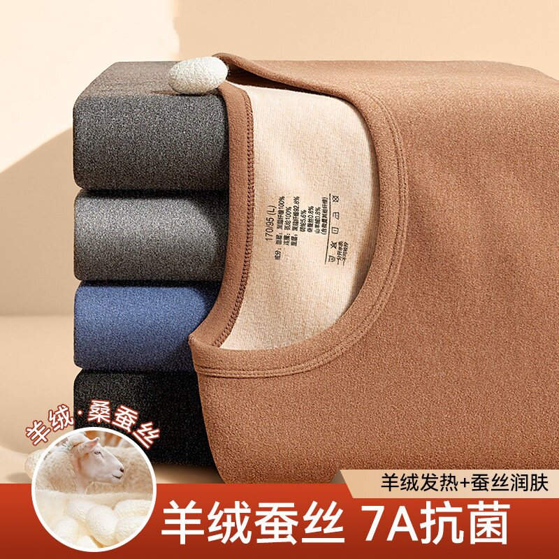 雅鹿羊绒蚕丝保暖内衣男款加厚加绒德绒发热冬季秋衣秋裤男士套装