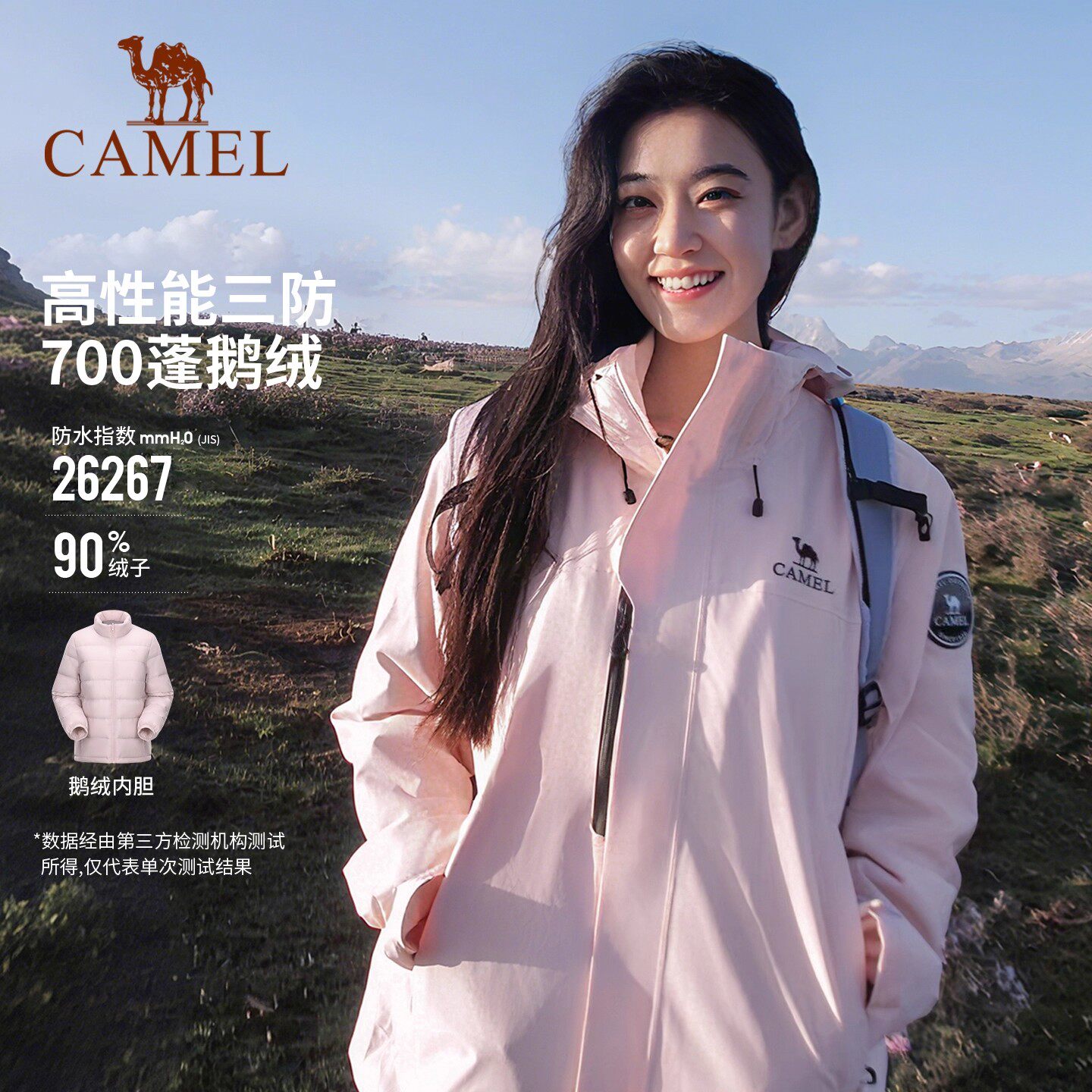 【春日粉】骆驼户外粉色冲锋衣男女款三合一鹅绒内胆羽绒服外套冬
