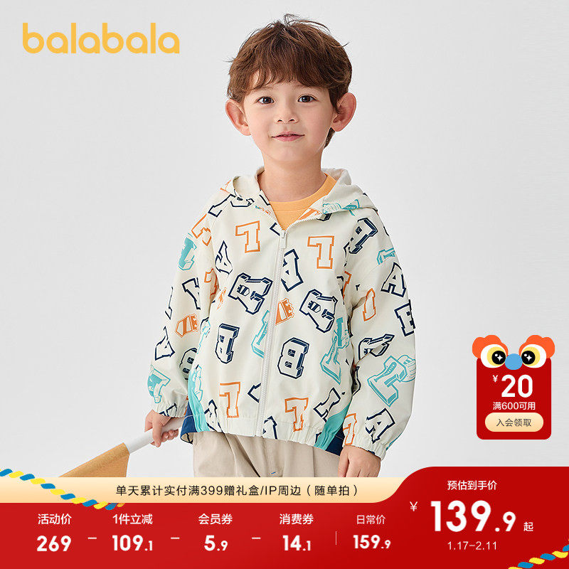 巴拉巴拉童装儿童外套男童春秋装连帽软壳衣拼色户外风趣味活泼