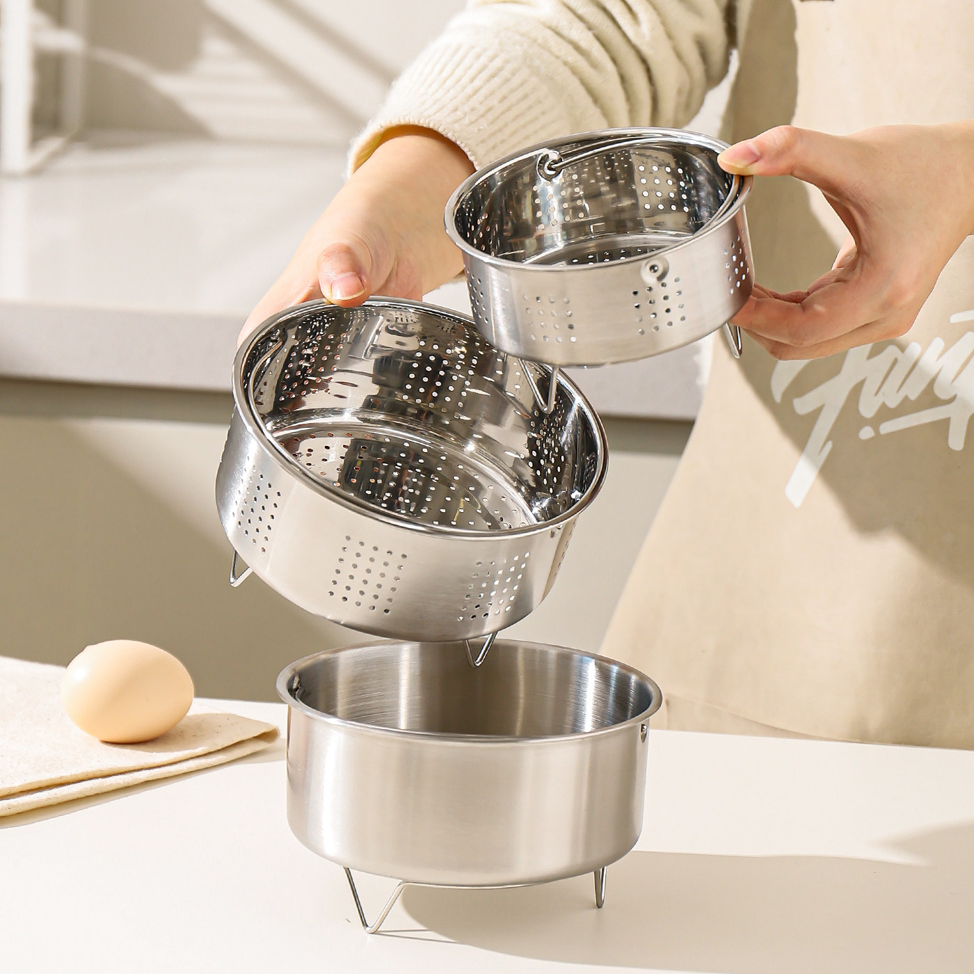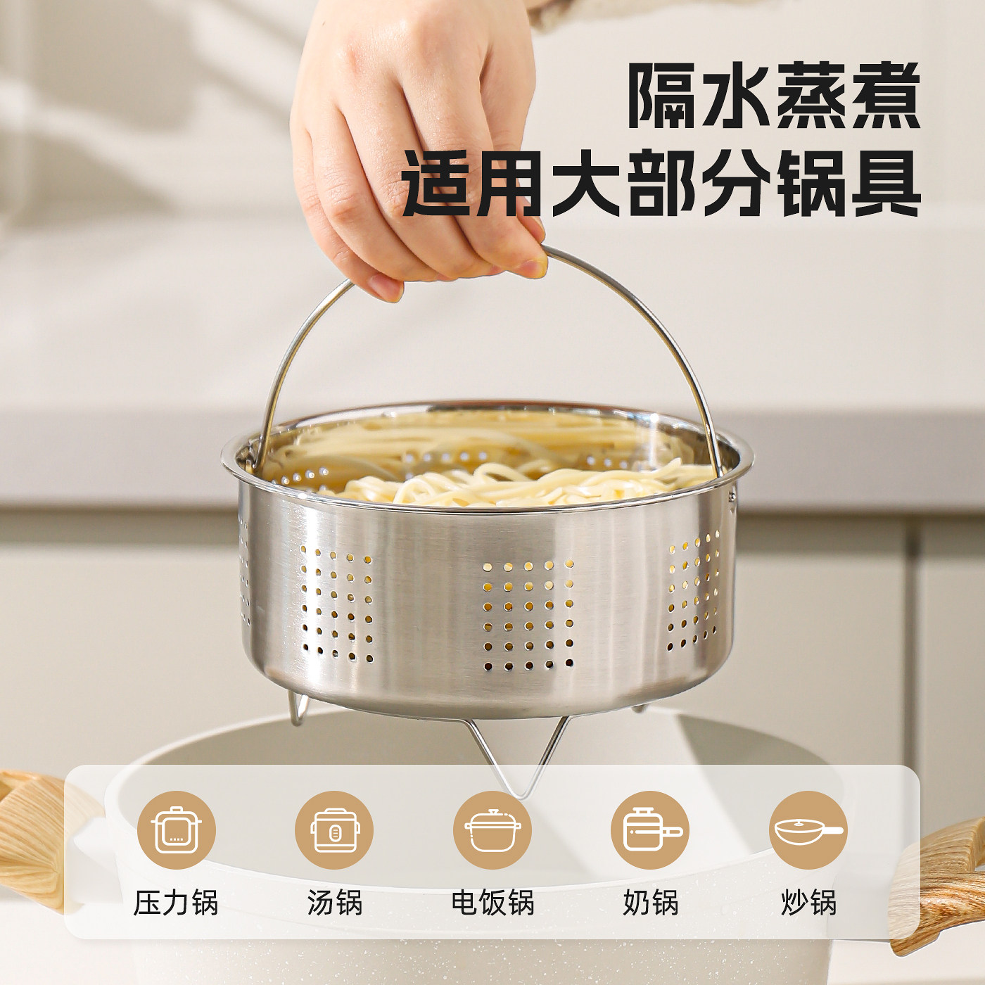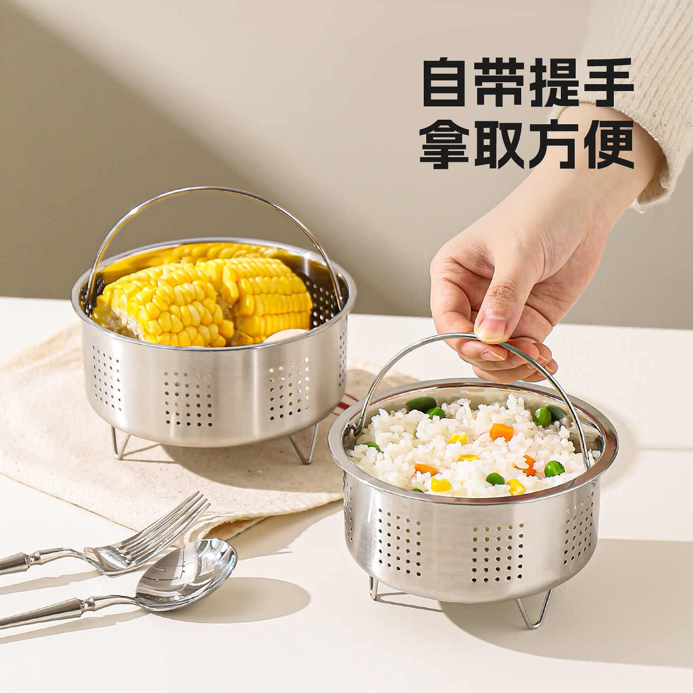川岛屋304不锈钢小蒸架带提手电饭锅内蒸笼蒸屉蒸锅篦子蒸盘蒸格