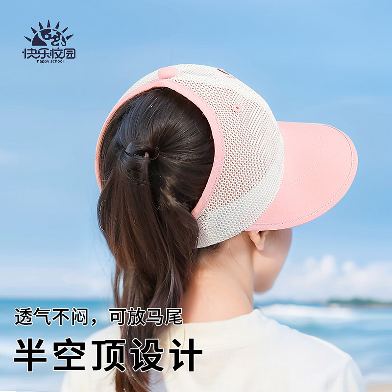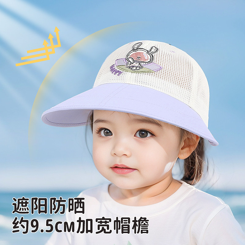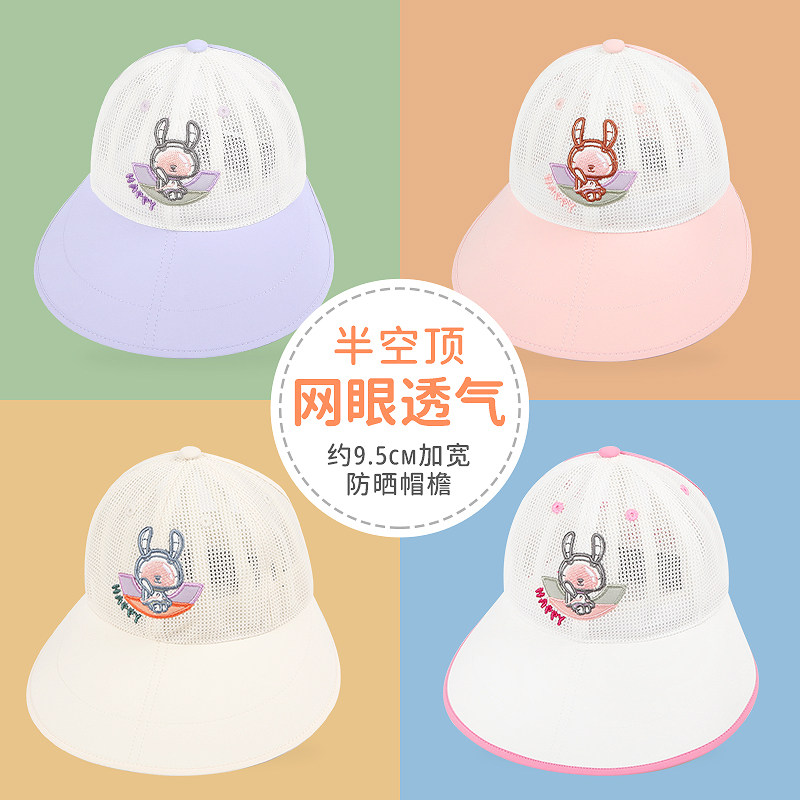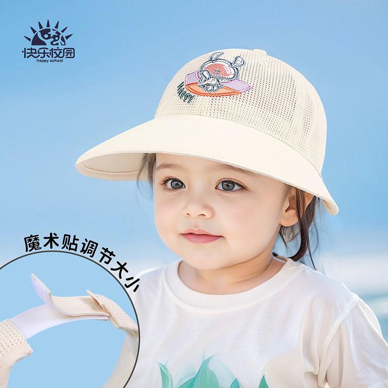 快乐校园春夏女宝宝防晒遮阳渔夫帽女孩小兔大檐镂空网眼透气盆帽