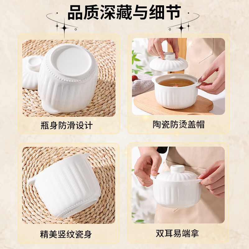 陶瓷双耳炖盅隔水炖带盖勺子家用燕窝专用碗烤梨汤盅瓦罐银耳白瓷