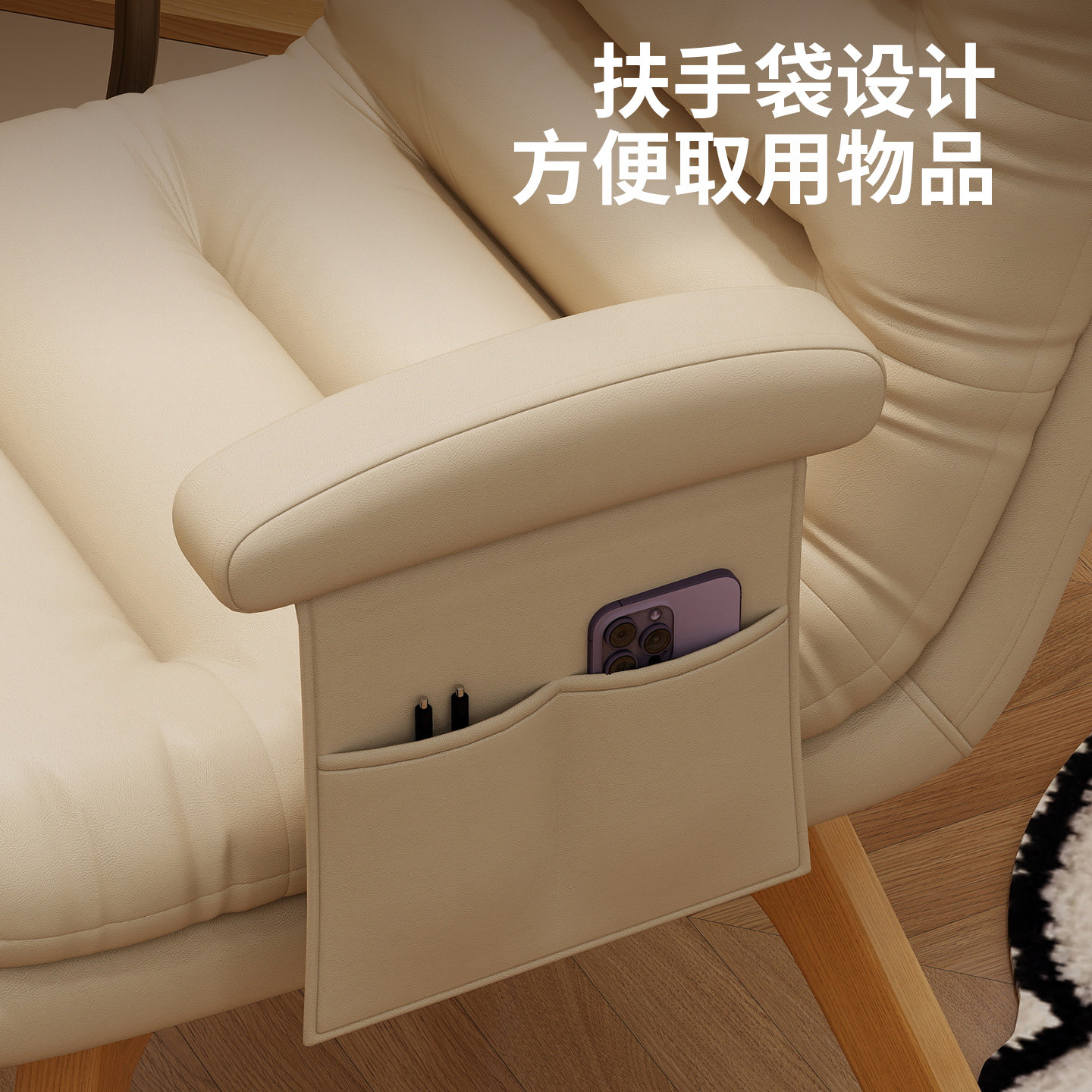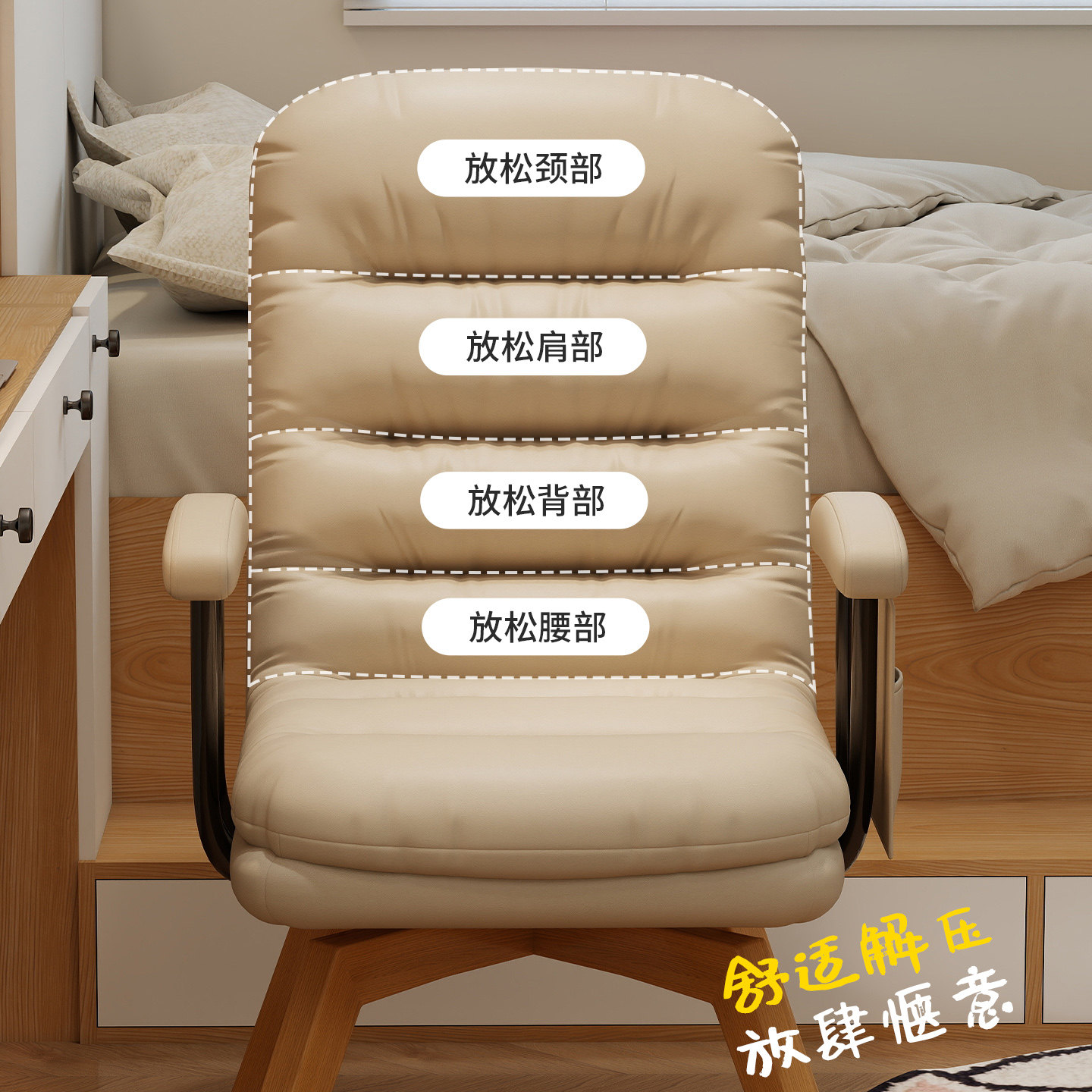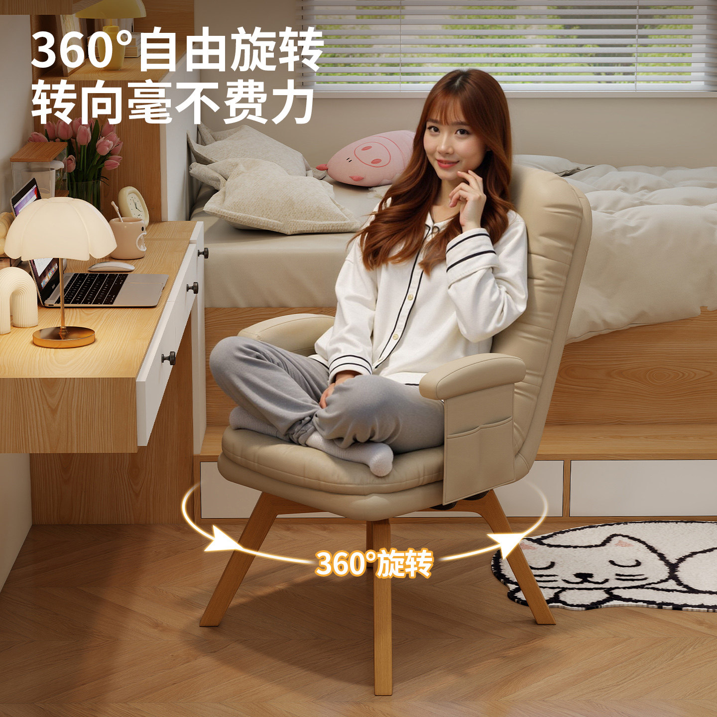实木旋转电脑椅家用单人书桌椅子卧室座椅靠背椅沙发盘腿久坐皮质