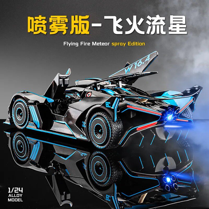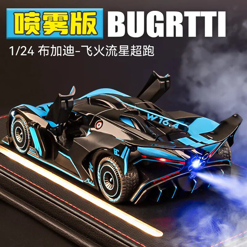 布加迪飞火流星车模合金仿真超跑汽车模型摆件可喷雾玩具车男孩