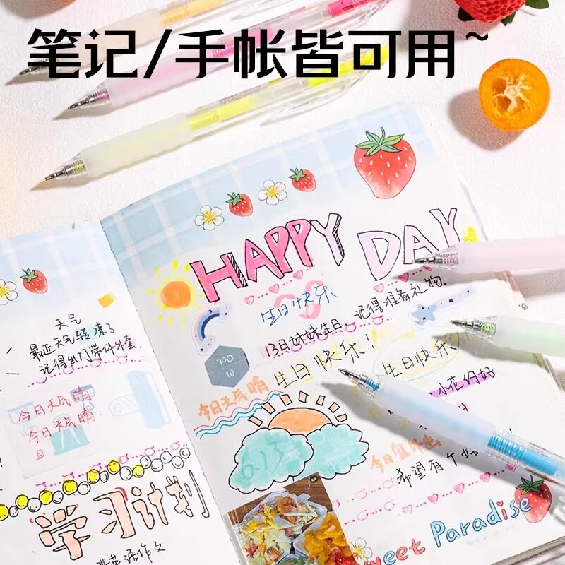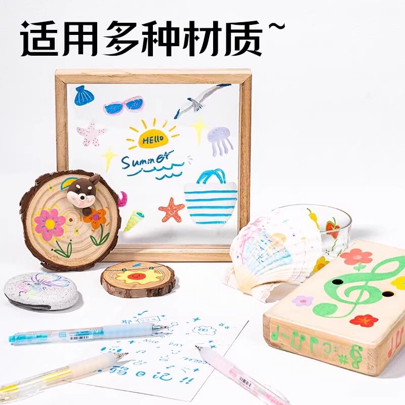 得力丙烯彩色中性笔按动马克笔ins风日系小清新糖果色初中高中生小学生专用丙烯勾线笔绘画手账笔diy丙烯笔