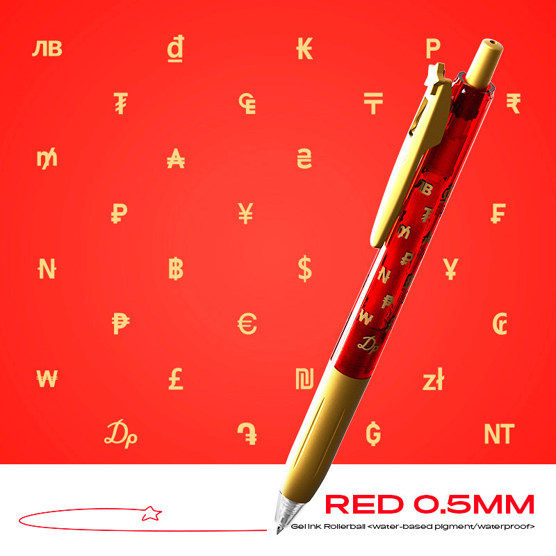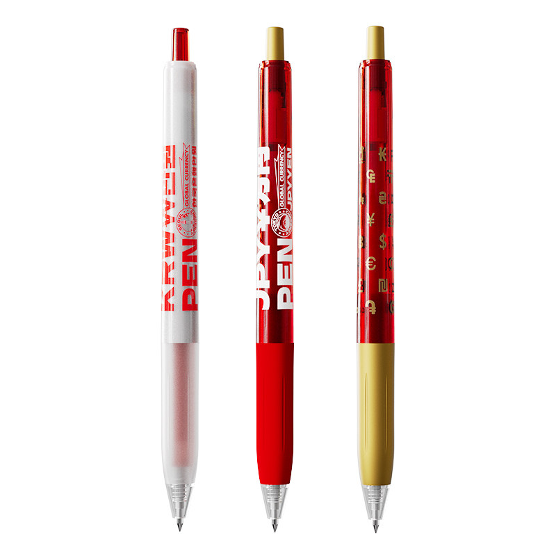 日韩国际货币符号高颜值笔杆 双珠速干红芯