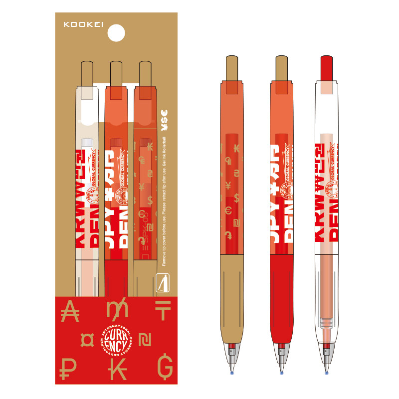 KOOKEI红色中性笔国际货币按动式红笔0.5速干大容量老师用红笔学生笔记教师批改作业签字笔日韩国际货币符号
