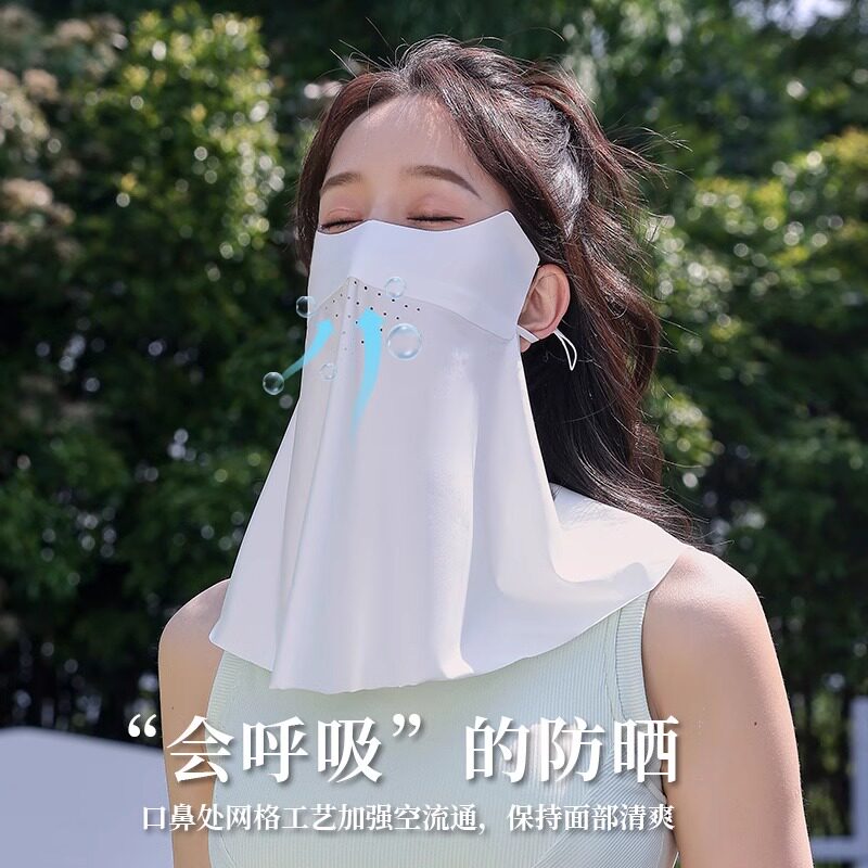 防晒面罩口罩无痕冰丝披肩一体防紫外线女遮全脸透气脸罩遮阳防护