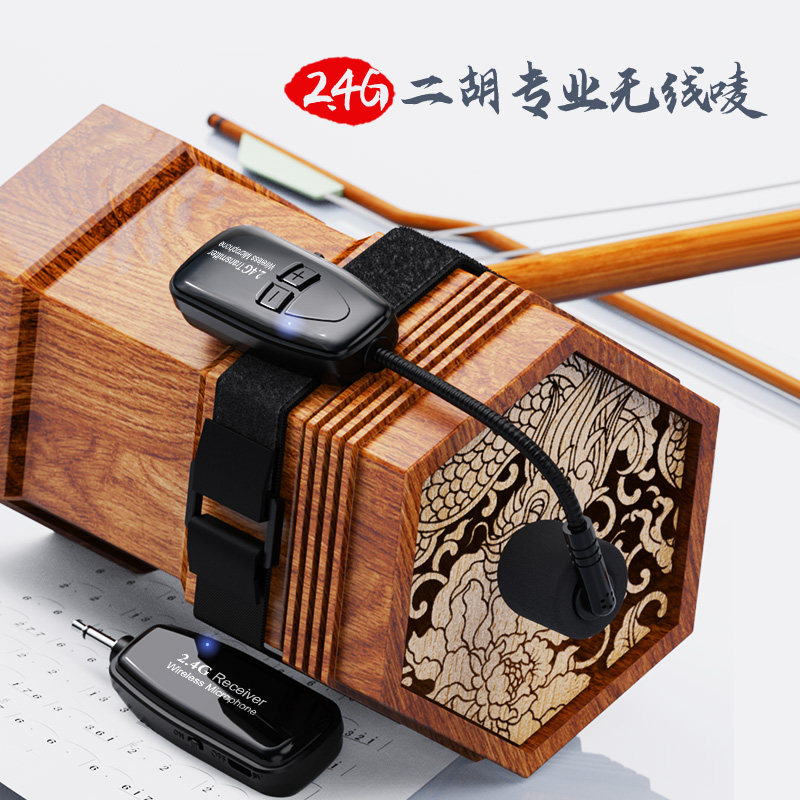 专业二胡拾音器一拖二舞台演出专用音响小话筒2.4G乐器无线麦克风