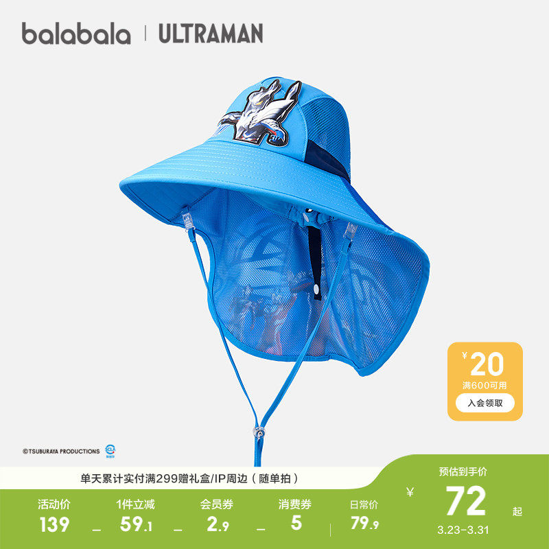 【奥特曼IP】巴拉巴拉男童遮阳披风帽子防晒盆帽时尚潮酷潮酷萌趣