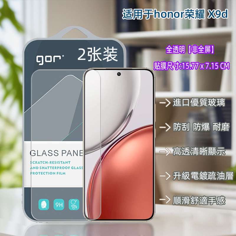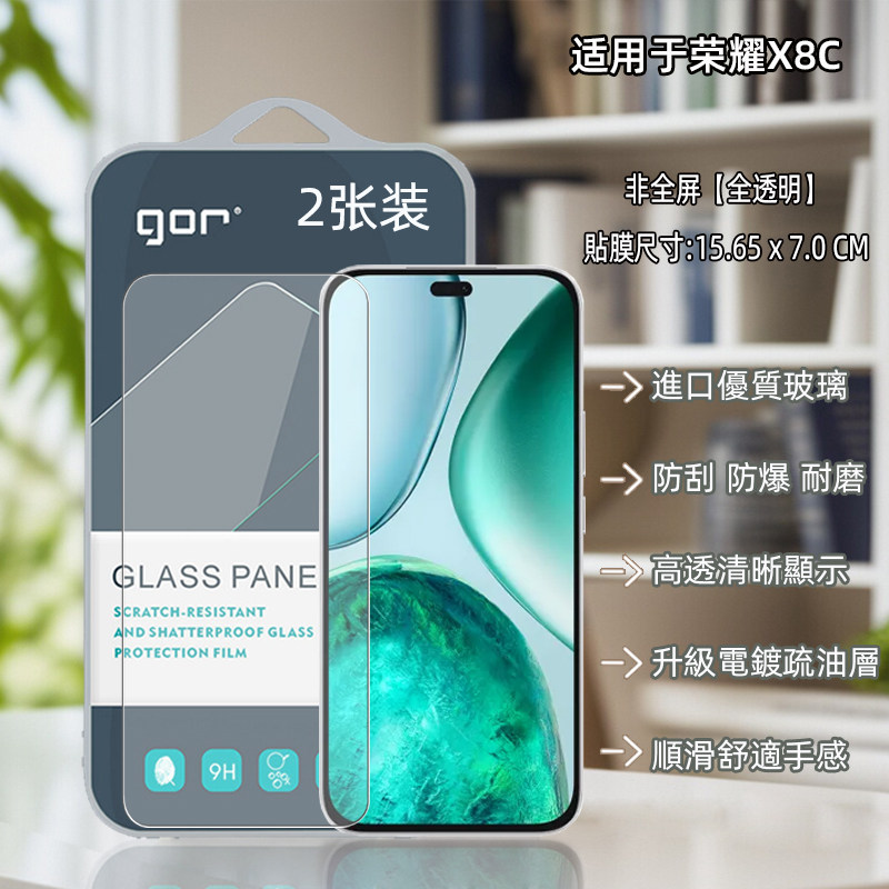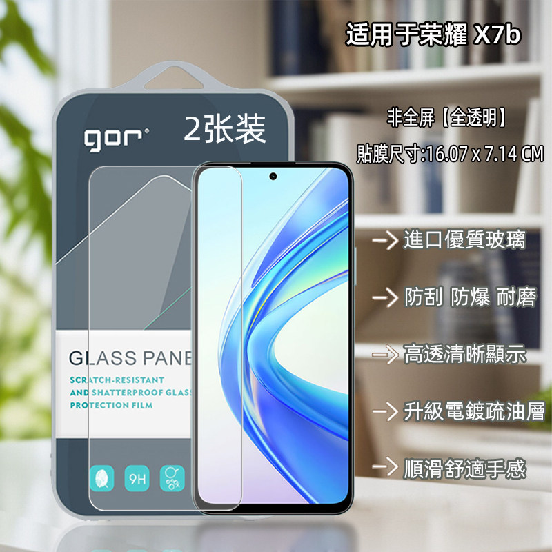 GOR适用honor荣耀x9d透x8c明X7B高X70清X60手机X40非X30全X10半荧I屏幕电话蓝宝石晶瓷钢化玻璃保护硬粘贴膜
