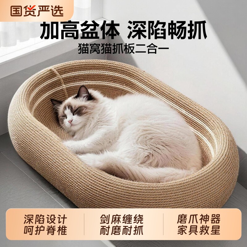 剑麻猫抓板耐磨不掉屑猫窝猫爪板一体四季通用耐抓猫玩具猫咪用品