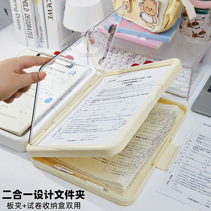 A4透明文件资料收纳盒小学生桌面写字板双层文件夹试卷整理储存盒