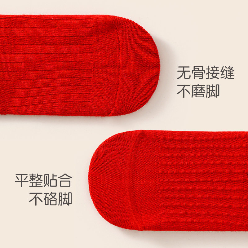 贝肽斯儿童本命年袜子男女童红色棉袜新生儿宝宝新年袜中筒秋冬S