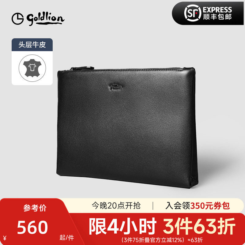 金利来新款皮具男士商务头层牛皮信封包时尚潮流拉链手抓包男