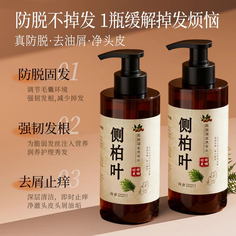 侧柏叶洗发水中药材固发防脱发草本精华蓬松控油洗发露生姜养发