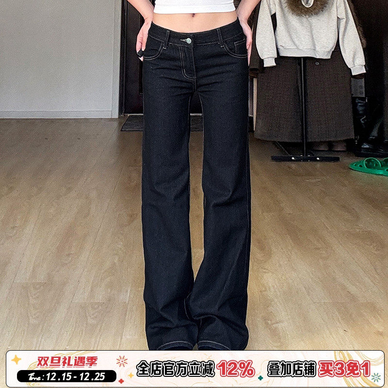 王家有鱼【古早蓝灰】2025秋季新款微喇牛仔裤中高腰不贴腿辣妹女