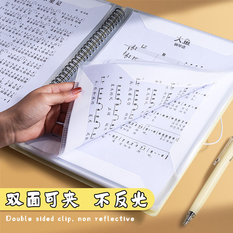 卡通儿童练习收纳乐谱文件夹可修改双面不反光吉他钢琴专用用乐谱夹透明活页线圈本琴谱歌谱收纳册