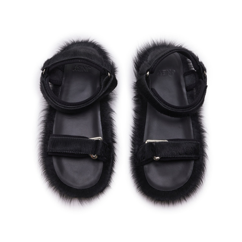 JNBY/江南布衣折扣春夏皮凉鞋牛皮革露趾平底鞋时尚潮流女