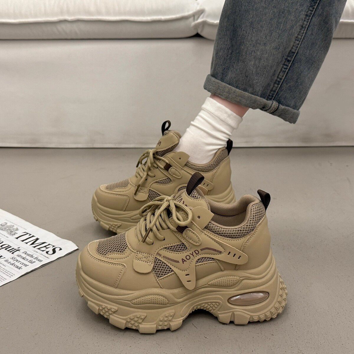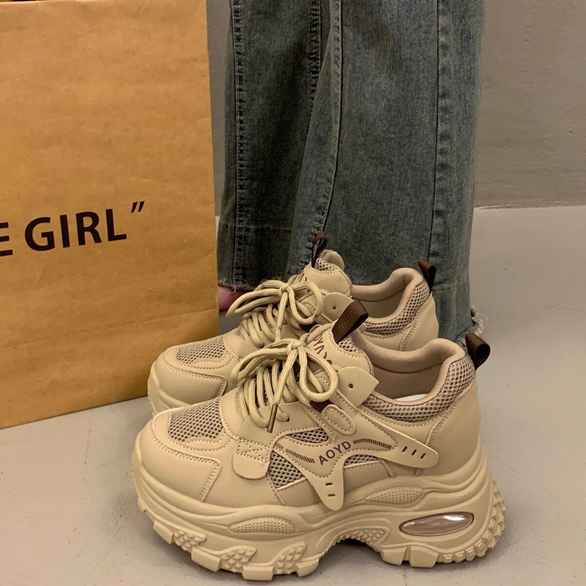 品牌断码松糕厚底老爹鞋女小个子增高2026超火时尚新款秋冬白色运
