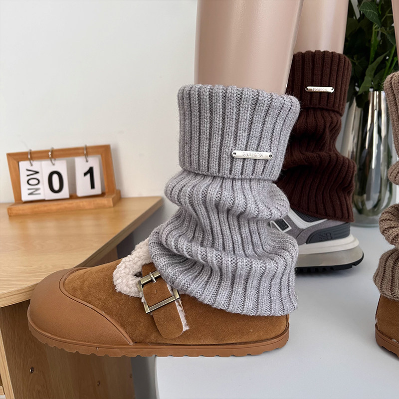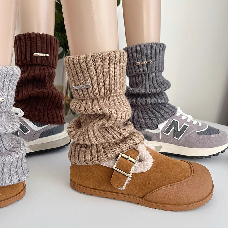 显瘦堆堆袜套袜子女秋冬针织长筒袜白色腿套保暖小腿袜加厚中筒袜
