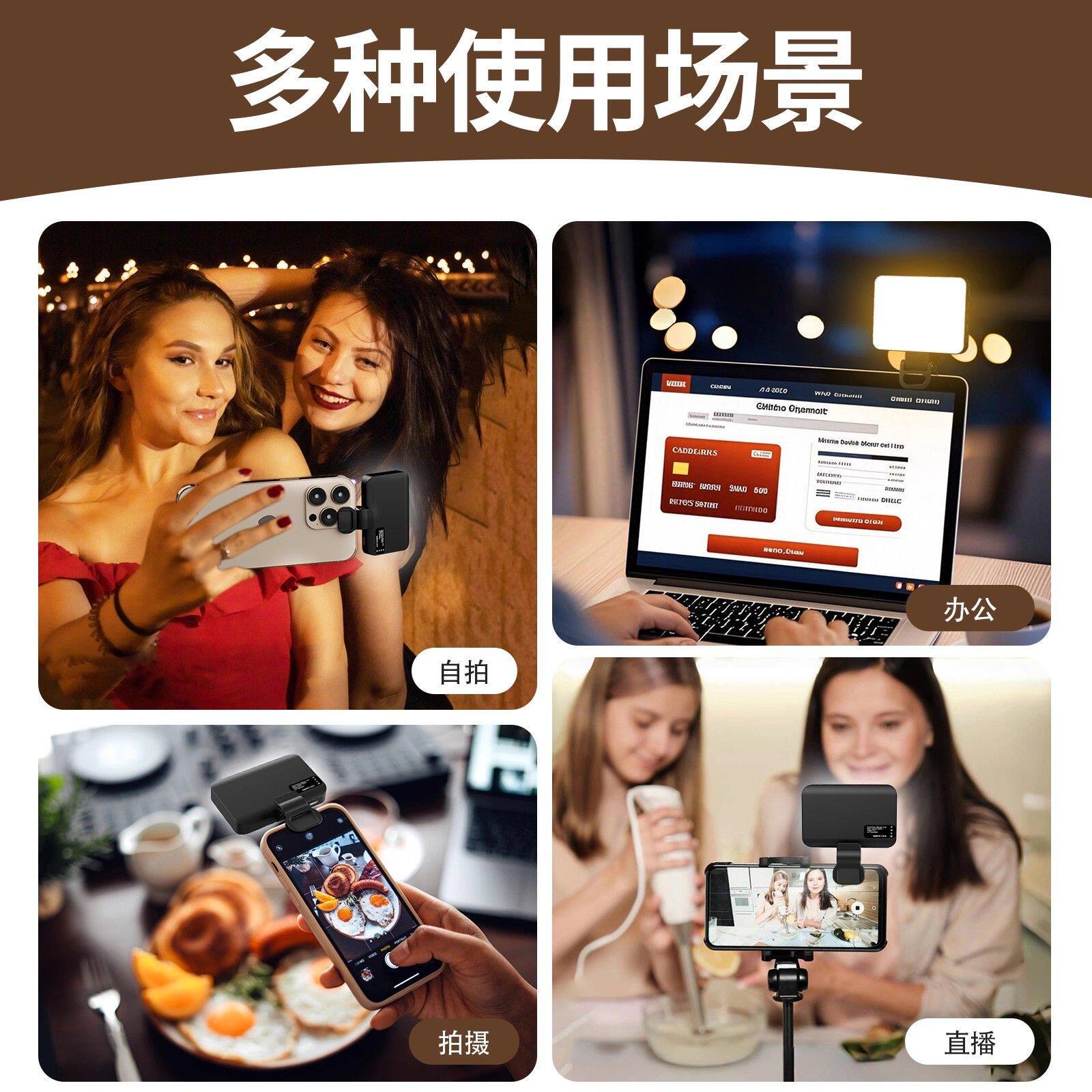 coofun迷你便携式自拍补光灯摄影rgb夹手机主播直播拍摄专用打光灯led氛围灯小巧户外手持专业柔光口袋美颜灯