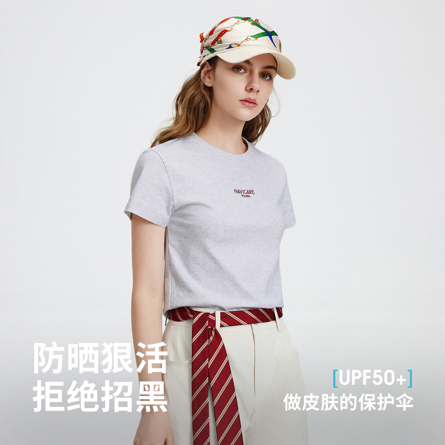 Navigare意大利小帆船灰色圆领T恤女2026春夏新款凉感短袖体恤衫