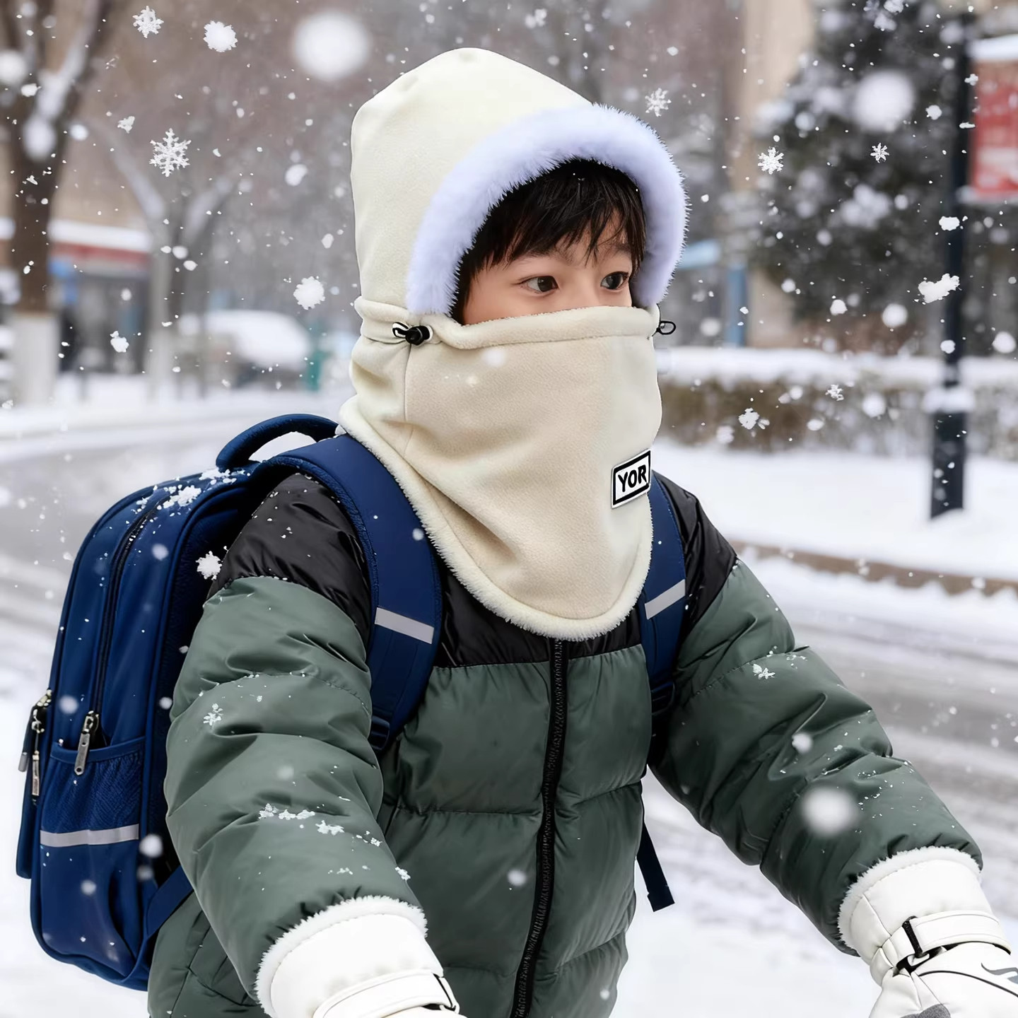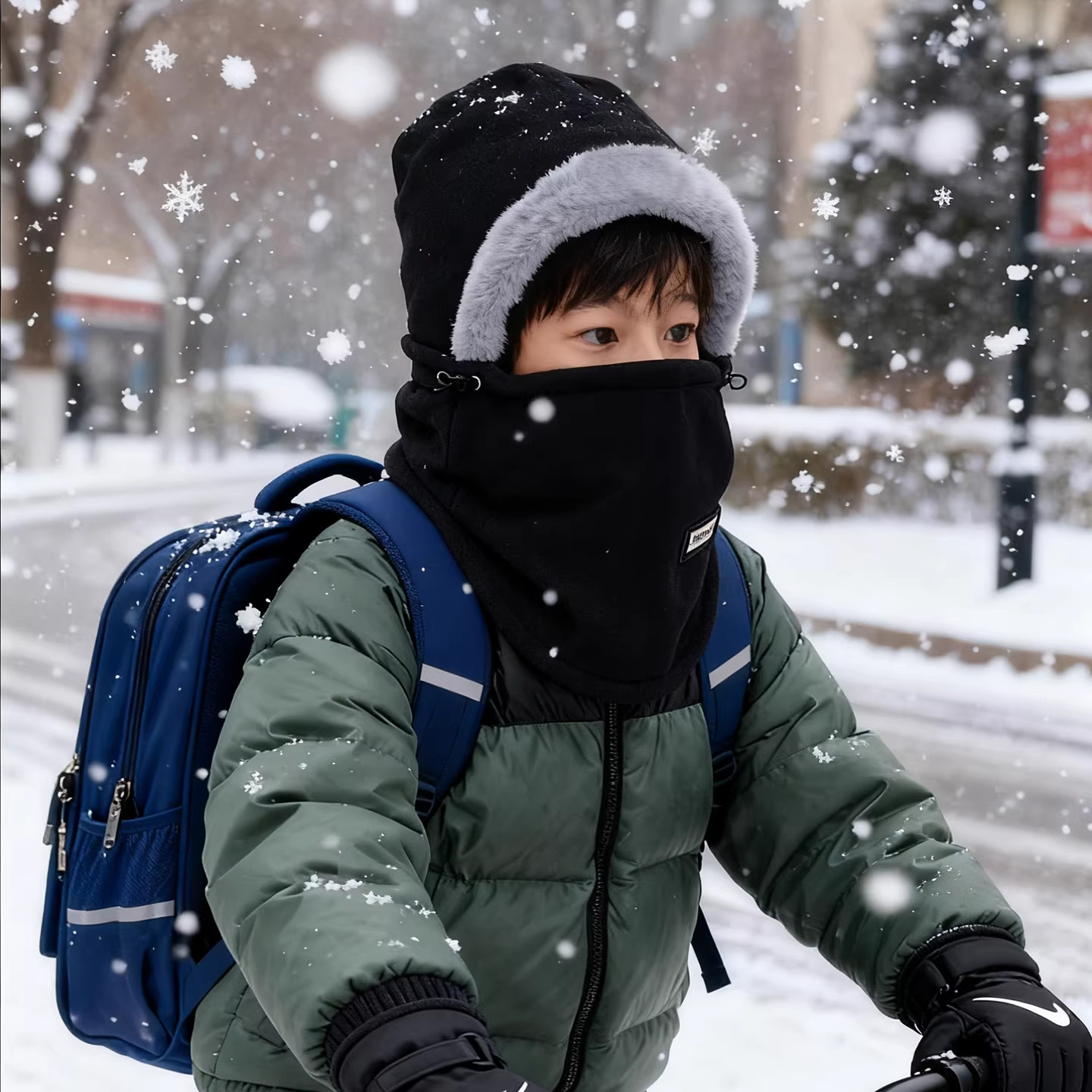骑车专用帽子围脖面罩一体青少年初中学生男骑行加厚保暖防风防寒