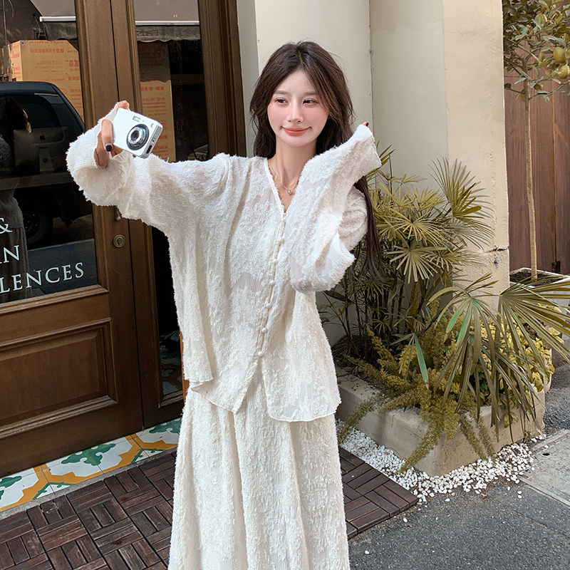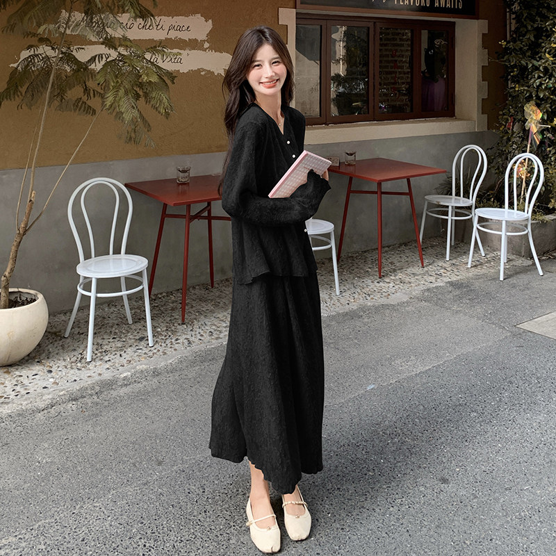 one more26年春秋高级感针织套装女春温柔风气质开衫半身裙两件套