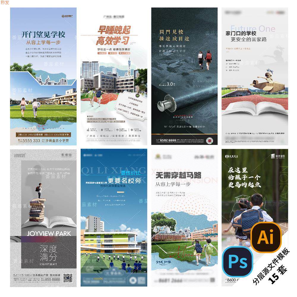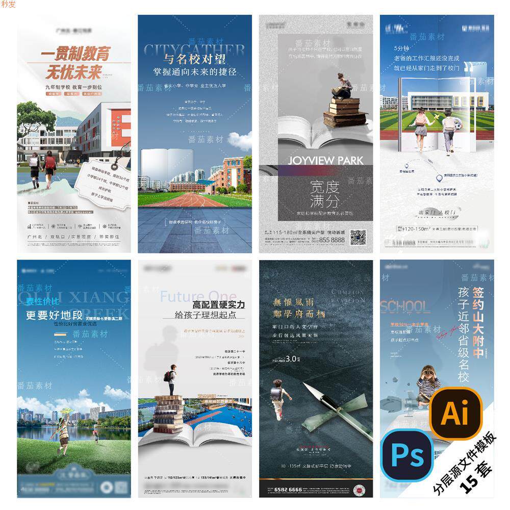 D17-地产学区价值海报洋房配套系列教育学府住宅PSD/AI素材模版
