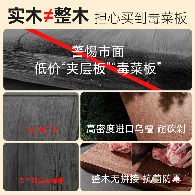 苏泊尔乌檀木实木菜板防霉抗菌家用砧板木质案板厨房粘板大号沾板